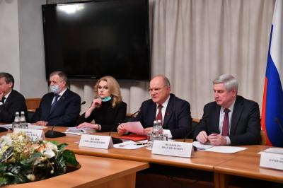 13 декабря фракция КПРФ в Госдуме провела встречу с заместителем Председателя Правительства Российской Федерации по вопросам социальной защиты Т.А. Голиковой, министром здравоохранения Российской Федерации М.А. Мурашко и главным государственным санитарным врачом Российской Федерации А.Ю. Поповой. Вел заседание Председатель ЦК КПРФ, Руководитель фракции КПРФ в Госдуме Г.А. Зюганов.