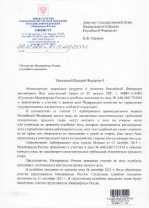 В итоге, депутатами был получен ответ, из которого следовало, что представитель Минприроды будет принимать участие во всех судебных