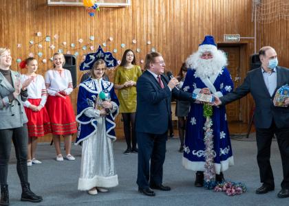 После праздничного концерта состоялась церемония вручения новогодних подарков от депутатов-коммунистов.