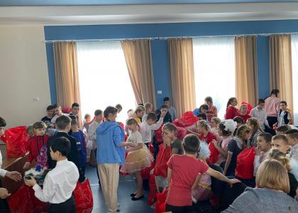 27 декабря российская делегация приехала в гости к ребятам в Александровскую и Луганскую школы Марьинского района, которые находятся фактически на линии фронта. По сей день на этих территориях происходят обстрелы – многие семьи уехали из Марьинки, но другие остались, стараясь выстраивать свой быт в таких непростых условиях. Ребята подготовили большую новогоднюю программу: ученики пели и танцевали, наряжались в новогодние костюмы и показывали занимательные сценки. По завершении мероприятия им вручили подарки от КПРФ. Дети, в свою очередь, тоже не остались в стороне и вручили подарки: памятные открытки с новогодними поздравлениями и сувениры, сделанные своими руками. «Наша сила в единстве. Я с большим удовольствием хочу передать вам поздравления от ваших сверстников из Якутии. Мы все ждём мира, спокойствия и стабильности на земле Донбасса. Мы все хотим, чтобы это зло наконец закончилось – добро должно торжествовать», – поздравил учеников Виктор Николаевич Губарев.
