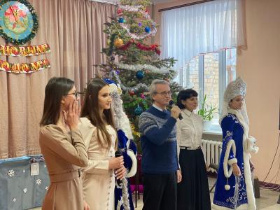 27 декабря российская делегация приехала в гости к ребятам в Александровскую и Луганскую школы Марьинского района, которые находятся фактически на линии фронта. По сей день на этих территориях происходят обстрелы – многие семьи уехали из Марьинки, но другие остались, стараясь выстраивать свой быт в таких непростых условиях. Ребята подготовили большую новогоднюю программу: ученики пели и танцевали, наряжались в новогодние костюмы и показывали занимательные сценки. По завершении мероприятия им вручили подарки от КПРФ. Дети, в свою очередь, тоже не остались в стороне и вручили подарки: памятные открытки с новогодними поздравлениями и сувениры, сделанные своими руками. «Наша сила в единстве. Я с большим удовольствием хочу передать вам поздравления от ваших сверстников из Якутии. Мы все ждём мира, спокойствия и стабильности на земле Донбасса. Мы все хотим, чтобы это зло наконец закончилось – добро должно торжествовать», – поздравил учеников Виктор Николаевич Губарев.