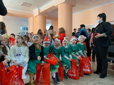 Делегация посмотрела вместе с ребятами интерактивное новогоднее представление, подготовленное актерским составом театра. По завершении мероприятия были подарены новогодние подарки от КПРФ – чудесные ранцы со сладостями.