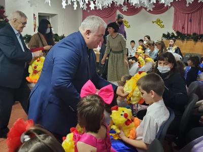 Далее в Донецком республиканском академическом театре кукол участники делегации поздравили детей погибших военнослужащих, которые родились в период боевых действий на Донбассе. Коммунисты хранят светлую память обо всех боевых товарищах и оказывают всю необходимую помощь их родным и близким, забота о семьях погибших военнослужащих – это безусловный нравственный долг.