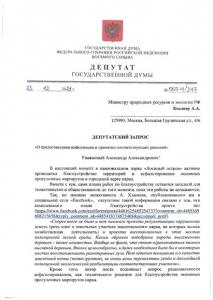 Депутат-коммунист поддержал данную инициативу, направив депутатский запрос в Минприроды с требованием принять соответствующие меры для рассмотрения предложенной активистом инициативы.