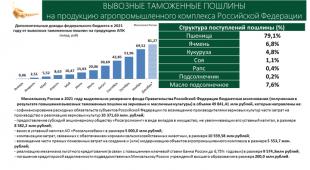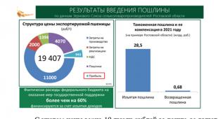 Сегодня уже 100 долларов с тонны зерна срезается в бюджет (7 рублей с килограмма). Поэтому мы должны в деталях рассмотреть все, что связано с изменением величины пошлины, ее снижением, минимум, до 20% от мировой цены, или вовсе отменой, а также всех вопросов, которые связаны с возвратом этих средств, и в первую очередь производителям зерна.