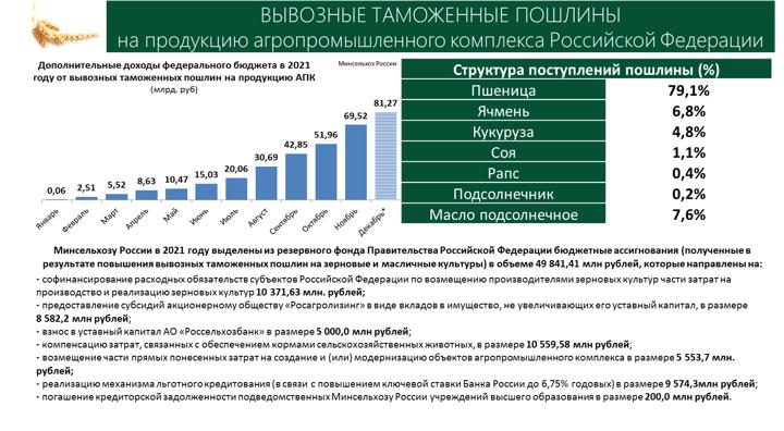 С чего все это началось, мы хорошо помним. Поднялись цены на продукты питания. И для того, чтобы их сдержать в феврале 2021 года вышло постановление Правительства Российской Федерации № 117 «О ставках вывозных таможенных пошлин на зерновые культуры…», затем, в тот же день, постановление, устанавливающее порядок возврата этой пошлины сельхозтоваропроизводителям.