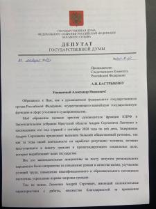 Моё обращение вызвано арестом руководителя фракции КПРФ в Законодательном собрании Иркутской области Андрея Сергеевича Левченко и нахождением его под стражей с сентября 2020 года по сей день. Задержание Андрея Сергеевича вызывает в обществе большой резонанс, так как за годы своей деятельности он заработал репутацию человека, активно выступающего на защите граждан Российской Федерации и пропагандирующего социальные цели, которые вырабатывает наше государство для создания социально ориентированных параметров жизнедеятельности населения. Все его законодательные инициативы на посту депутата регионального парламента были направлены на повышение уровня и качества жизни, улучшение условий труда, повышение квалификационного и образовательного потенциала населения, усиление охраны здоровья и прочие параметры, ориентированные на действительно эффективную социальную политику.