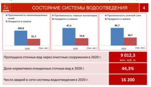 Замены требует половина канализационных сетей, в том числе 20 тыс. км. главных коллекторов и почти 40 тысяч километров уличной канализационной сети. Аварийность – больше 16 тысяч случаев!