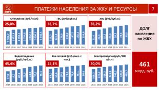 Даже при текущей структуре управления ЖКХ, прослеживается четкая тенденция к перекладыванию затрат на плечи населения. Отопление и сетевой газ подорожали за последние 6 лет на 25%, электроэнергия на 30%, горячее и холодное водоснабжение – на 36%, водоотведение – почти в два раза! В результате уже к середине 2021 года совокупный долг населения по плате за ЖКХ приблизился вплотную к 500 млрд. рублей. А вместе с хозяйственным сектором долг за ЖКХ уже перевалил за 1 трлн. рублей.