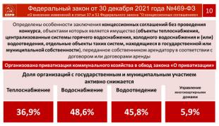 При этом механизмы государственно-частного партнерства на этом направлении могут быть использованы, но не в той искаженной форме, как это делается сейчас. А сейчас, по сути, проводится приватизация коммунального хозяйства в обход закона «О приватизации».