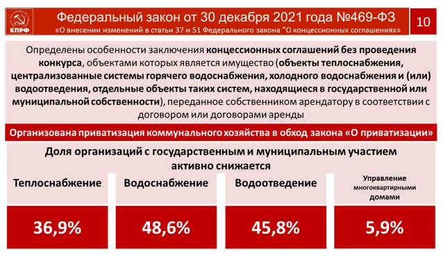 Фракция КПРФ в Государственной Думе голосовала против принятия этих откровенно вредительских изменений в закон «О концессионных соглашениях» и будет добиваться отмены внесенных поправок.