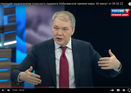 Тема обсуждения: воинствующий национализм бывшего президента Польши, лауреата Нобелевской премии мира Л.Валенсы, который призвал в случае эскалации конфликта на Украине нанести ответный удар по Москве.