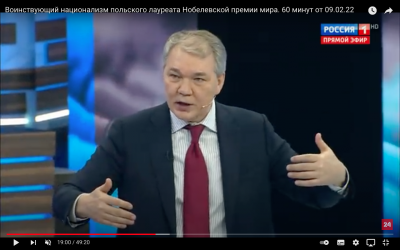 Тема обсуждения: воинствующий национализм бывшего президента Польши, лауреата Нобелевской премии мира Л.Валенсы, который призвал в случае эскалации конфликта на Украине нанести ответный удар по Москве.