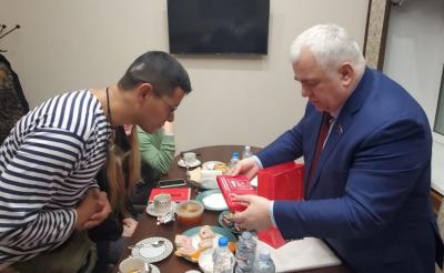 На встрече Казбек Тайсаев рассказал о работе, которая проводится в рамках СКП-КПСС, и передал слова приветствия от Лидера СКП-КПСС и КПРФ Геннадия Андреевича Зюганова. Стороны обсудили положение наших соотечественников в Перу – там проживает более 2 тысяч российских граждан. Кроме того, поговорили о сегодняшней мировой обстановке, договорились об активизации российско-перуанских межпартийных связей, а также о развитии двустороннего политдиалога между Российской Федерацией и Перу.