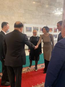 Перед началом мероприятия Казбек Тайсаев познакомил присутствующих с выставкой в холле и рассказал о достижениях великого корейского народа на примере фотографий.