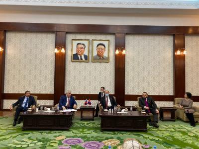 22 марта в Посольстве КНДР состоялась встреча Чрезвычайного и Полномочного Посла КНДР Син Хон Чхоля с координатором депутатской группы дружбы по связям с парламентом Корейской Народно-Демократической Республики, секретарем ЦК КПРФ, первым заместителем Председателя ЦС СКП-КПСС, первым заместителем Председателя Комитета Государственной Думы по делам СНГ, евразийской интеграции и связям с соотечественниками Казбеком Тайсаевым и депутатом Госдумы, первым секретарем Алтайского крайкома КПРФ Марией Прусаковой. Участие во встрече также приняли сотрудники посольства КНДР, отдел ЦК КПРФ по национальной политике и СКП-КПСС.