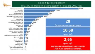 Мы посмотрели на перспективу 2022-2024 годов – всего по 24 миллиарда рублей в год окрашено в федеральном бюджете средств, направляемых на развитие села, в частности – это направления образования, культуры, охраны окружающей среды, физической культуры, развития природоресурсного потенциала и федеративных отношений. Все!