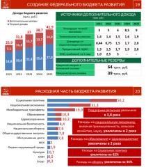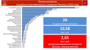 Уважаемые товарищи, Итоги 2021года в экономическом и социальном строительстве страны уже опубликованы официально. Государство по году получило достаточно большой рост ВВП (до 130 триллионов рублей) и бюджета (6,5 триллионов рублей). Теперь мы предметно видим целевую опорную финансовую базу и расчеты, где и как эти деньги должны работать, куда их целесообразно и необходимо направить. Давайте проследим, какую отдачу от полученных государством доходов люди ощущают на своей жизни.