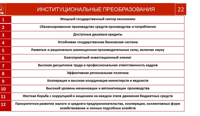 Уважаемы товарищи. Вот наш план преобразований и развития, создающий основу самодостаточной, сильной, независимой экономики.