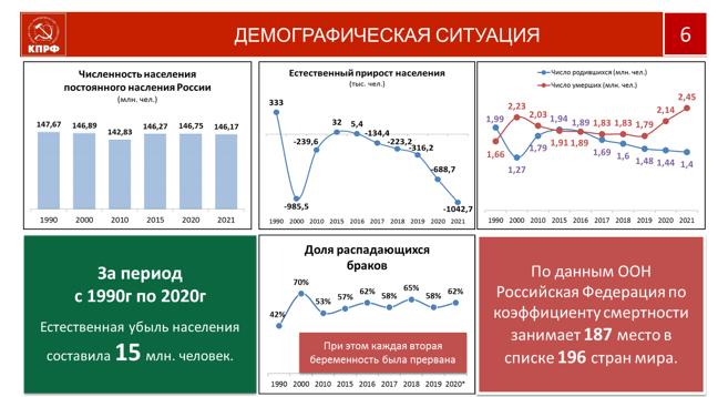 Эту тему мы не раз обсуждали. Мы с вами уже потеряли 15 миллионов человек, а сейчас вышли уже на ежегодную убыль населения, превышающую эту страшную, по своей сущности, сумму в миллион человек. Вы видите 2021 год – один миллион 42 тысячи.