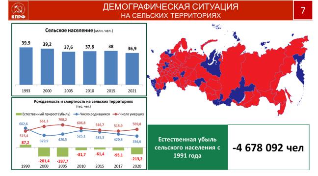 Следующий слайд по сельской демографии, уровень которой не менее тревожен.