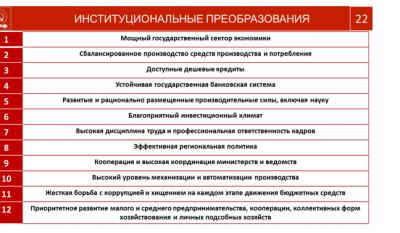 Уважаемы товарищи. Вот наш план преобразований и развития, создающий основу самодостаточной, сильной, независимой экономики.
