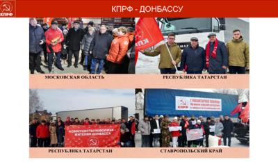 Вся эта информация дается для того что бы вы подошли к пониманию главного вопроса и цели наших программ. Забота о народе и помощь людям - вот что сегодня актуально и важно для определения приоритетов в нашей работе. Над этим наша партия сейчас и работает. Вот мы сегодня все в один голос говорим – помогаем Донбассу. Слушайте, Донбассу партия помогает не только своей идеологией, своим сердцем, душой и оружием, не пустословием с телеэкранов, как некоторые, а конкретной помощью, многотонным грузом продовольствия десятков гуманитарных конвоев. Вот 94 конвоя и 13,3 тысячи тонн, необходимых для жизни товаров, отправлено. Наши конвои полнокровные –каждый около 100 тонн. Вот сейчас 25 апреля будем отправлять 95-й со 120-итонным грузом. А недавно, 20 марта, в составе 94-го - ушло 90 тонн. Вы сравнивайте: из России КПРФ одна отправила в Донбасс гуманитарной помощи больше, чем все другие в сумме.