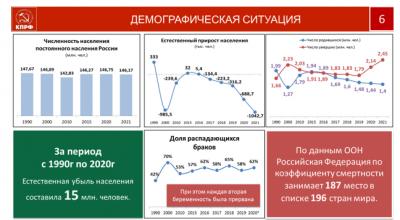 Эту тему мы не раз обсуждали. Мы с вами уже потеряли 15 миллионов человек, а сейчас вышли уже на ежегодную убыль населения, превышающую эту страшную, по своей сущности, сумму в миллион человек. Вы видите 2021 год – один миллион 42 тысячи.