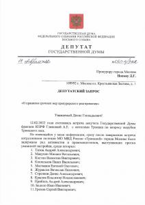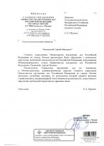 В тот же день, по следам событий, депутат Госдумы Сергей Обухов направил запрос в прокуратуру г. Москвы с требованием принять меры по факту нарушений, допущенных со стороны руководителя МО МВД «Троицкий» при задержаниях активистов. Под контролем прокуратуры была проведена проверка центральным аппаратом ГУ МВД по г. Москве. По результатам проверки МВД было вынуждено признать факт нарушений со стороны руководителя МО МВД «Троицкий» и привлекло его к дисциплинарной ответственности.