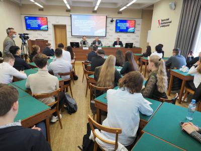 Затем Леонид Калашников встретился со студентами и преподавателями самого большого высшего учебного заведения Урала. Он рассказал о созидательной деятельности фракции КПРФ в Государственной Думе. Депутаты-коммунисты постоянно выдвигают инициативы по улучшению благосостояния российских граждан, однако партия власти «Единая Россия» блокирует эти предложения. К ним, например, относится идея о поддержке и всестороннем развитии народных предприятий.