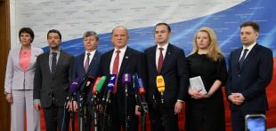19 апреля, предваряя пленарное заседание Госдумы, перед журналистами выступил Председатель ЦК КПРФ, Руководитель фракции КПРФ в Госдуме Г.А. Зюганов.