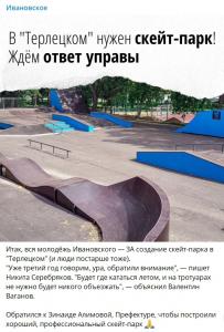 Московские чиновники очень любят скейтпарки. Тяга бюрократов к этим сооружениям настолько захлёстывает их сознание, что они уже готовы располагать их даже на особо охраняемых природных территориях. Недавно в интернет-сообществах района Ивановское появилась информация о планируемом строительстве скейтпарка в Терлецком лесопарке.