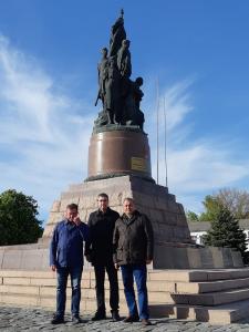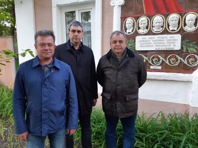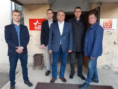Новосибирцы познакомились с местным активом коммунистов, посетили обком, во дворе которого установлены бюсты В. И. Ленина и И. В. Сталина, а также мемориальная доска, напоминающая о том, что в августе 2014 года во дворе от разрыва снаряда погибли два товарища — военнослужащие ЛНР Владимир Романов и Владислав Кулишин.