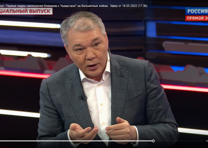 Эксперты-политологи в студии программы обсуждают новости с фронта. Первые кадры нахождения боевиков «Азовстали» на больничных койках. Всего с 16 мая из подземелий завода «Азовсталь» в Мариуполе вышли 959 боевиков, в том числе 80 раненых. Из них 51 человек доставлены в больницу Новоазовска. Раненых прооперировали, накормили. Российские военные производят досмотр вышедших.