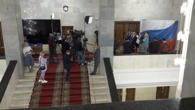 - "Добрый день. Красногалстучная пионерия продолжает отмечать свой вековой юбилей. Хочу еще раз всех поздравить с этим замечательным праздником и заодно поблагодарить руководство Госдумы и всех лидеров думских фракций. В начале прошлой недели они вместе с нами открывали великолепную выставку, посвященную столетию Пионерии", - сказал Г.А. Зюганов.