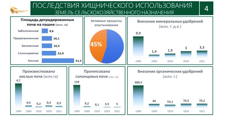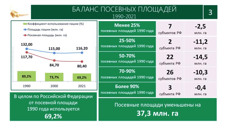 В целом же по России мы потеряли больше 254 млн. га земель сельскохозяйственного назначения, из севооборота выбыло 37 млн. га! И этот процесс, к сожалению, продолжается.