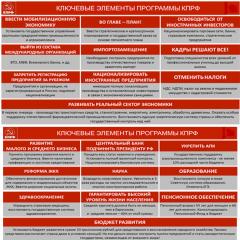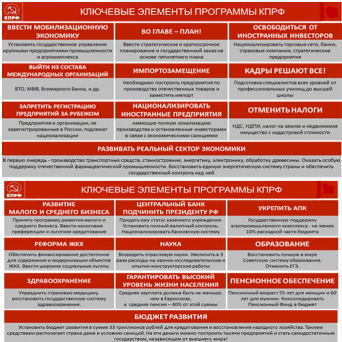 Все главные тезисы предстоящих изменений содержит наша Программа "20 неотложных мер для преображения России", вобравшей в себя важнейшие предложения наших партийных организаций и научно-экспертного сообщества специалистов. В значительной степени Программа построена на концептуальном осмыслении и развитии принципов прагматичной ленинско-сталинской государственной программы индустриализации, благодаря которой Советский Союз в ХХ веке не только выстоял в суровых испытаниях, но, в небывало короткие сроки, смог стать одной из наиболее могучих мировых держав. Ее основополагающими принципами являются государственное планирование и национализация стратегических отраслей и крупнейших предприятий. Реализация нашей Программы обеспечивает развитие науки и производственного потенциала, максимальную мобилизацию природных энергетических и трудовых ресурсов, предопределяя преодоление кризиса и достижение уровня жизни передовых государств.