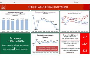 Политика власти и верхушки "ЕдиноРоссов", партийное большинство которых не устает с телеэкранов восхвалять свои ложные заслуги, на самом деле привела страну к вопиющей беде. Только за последний год наша Родина потеряла более миллиона человек, а объективный анализ фактов и прогнозы экспертов внушают еще большую тревогу. Только за три последних года страна потеряла 2 млн. человек. Демографическая проблема ведет к критическому сокращению людей трудоспособного возраста. Даже по официальным данным уже 20% населения находятся за чертой бедности. Мы приводим этот, убийственный для общественного сознания, анализ не для того, чтобы всё отторгнуть и перечеркнуть, а для того, чтобы заявить: дальше так жить нельзя. Необходимо менять ситуацию. В годы советской власти ежегодный прирост населения нашей Великой Державы, в среднем, составлял 1,7 млн. чел.. Это норматив, определяющий жизнестойкость нации, который государство обязано восстановить своей новой политикой.