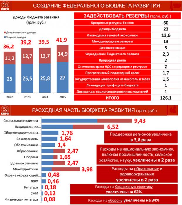 Мы уверены, что в центре всего этого, по праву должны стоять Программы КПРФ по преобразованию экономики и разработанный нами бюджет развития.