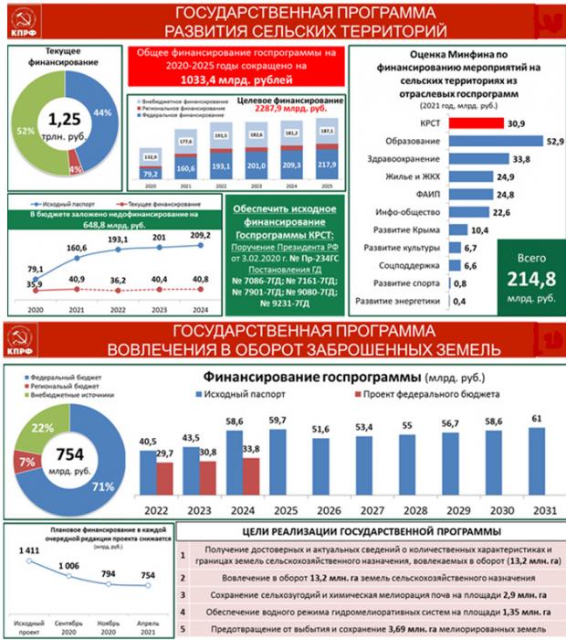 Глобальным вызовом ближайшего периода для мира является продовольственная проблема. КПРФ разработала и предложила правительству для реализации целую систему мер, включающую Программы "Развитие сельских территорий" и "Вторая целина", которые начали осуществляться.