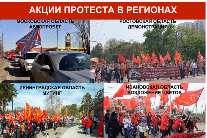 Политический протест, работа на улице, в гуще народа, для партийных отделений и партии в целом стал важнейшей возможностью прямой коммуникации с населением. Массовая народная акция протеста, применяемая КПРФ, была и остается одной из основных форм для гласного выражения партией своей позиции по важнейшим событиям, проблемам страны и ее народа. Протестная акция для нас является и трибуной, и индикатором общества. В условиях санитарных и административных запретов и ограничений именно протест дал партии возможность остаться на улице, быть с народом, слышать, чувствовать, сопереживать проблемы людей. Через него мы слышим голос народа и говорим с властью, получаем оперативную информацию о политическом настрое социальных групп и проблемах людей.