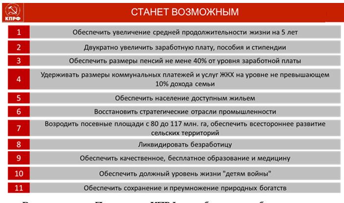 Все положения Программы КПРФ приобретают особую актуальность и значимость, как действенные меры противодействия массированной экономической блокаде, объявленной нам империализмом США и Запада.