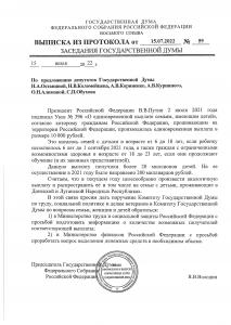 Ниже публикуем официальные выписки из протокола заседения Государственной Думы от 15 июля 2022 года.