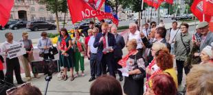 В столице, 28 июля москвичи и жители Подмосковья собрались напротив Посольства США в Москве на Новинском бульваре на встречу с депутатами-коммунистами.