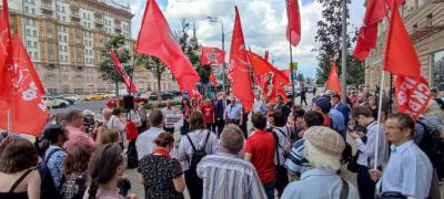 В столице, 28 июля москвичи и жители Подмосковья собрались напротив Посольства США в Москве на Новинском бульваре на встречу с депутатами-коммунистами.