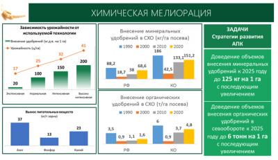 Напомню, что одна тонна урожая выносит с поля 73 килограмма NPK, в том числе 37 кг азота. Значит те 120 миллионов тонн зерна, которые мы сегодня устойчиво производим, определяют необходимость возмещать почве 8,6 млн. тонн действующего вещества. И здесь, в Калининградской области, этот баланс соблюдается полностью - 151 килограмм действующего вещества минеральных удобрений вносят аграрии региона на один гектар посева. Это показатель интенсивной технологии. И, кроме того, в регионе вносится в 2,5 раза больше органических удобрений, чем в среднем по России.