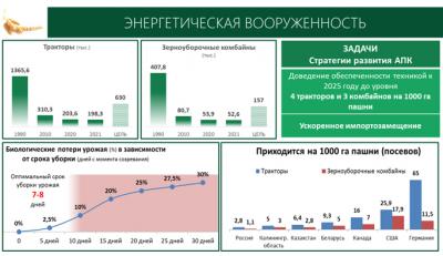 Получается, к примеру, по зерновым, к 2025 году нам надо выйти на стабильные урожаи в 141 млн. тонн. Исходя из этой цифры, становятся ясны задачи на всех других направлениях, и по вовлечению в сельскохозяйственный оборот земель, и по увеличению урожайности.