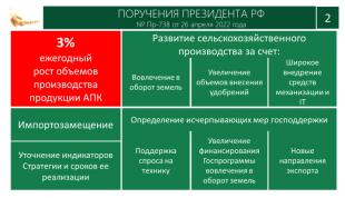 Четко обозначена задача – 3% ежегодный рост объемов производства продукции АПК. Исходя из этого даны поручения в части минеральных удобрений, вовлечения сельскохозяйственный оборот земель, широкого внедрения средств механизации и информационных технологий.