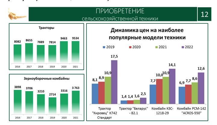 За последние 3 года цена на технику удвоилась, а цена зерна сегодня 11-13 тыс. рублей за тонну, как и в 2019 году.