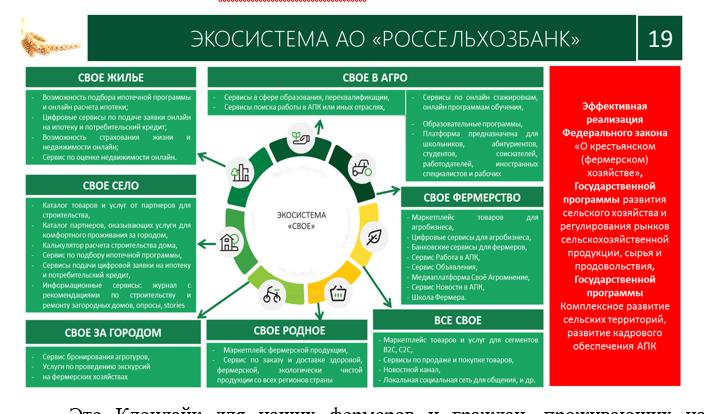 Это Клондайк для наших фермеров и граждан, проживающих на сельских территориях. Тут все, начиная с сельской ипотеки, продолжая обучением и системами повышения квалификации работников АПК, и заканчивая возможностями реализации фермерской продукции. А ведь именно эти и есть та эффективная реализация наших законодательных усилий по поддержке малых форм хозяйствования и Государственной программы комплексного развития сельских территорий, которую мы хотим видеть, которая реально работает. Именно такие проекты должны поддерживаться государством и развиваться при его активном содействии.